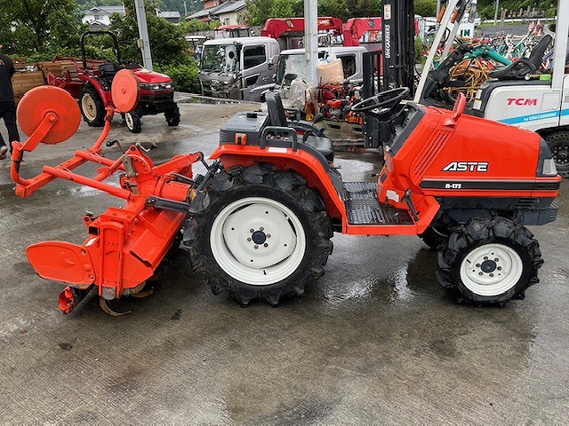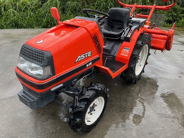 KUBOTA A175 — – 3 cilindrų dyzelinis variklis; – 17 AG; – 4 WD; – Hidraulinė sistema; – Palėtintos pavaros; – Darbinis velenas; – Blokiruotė; – Žemės dirbimo freza YRA;